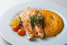 Стейк из форели на морковно-картофельном смузи
